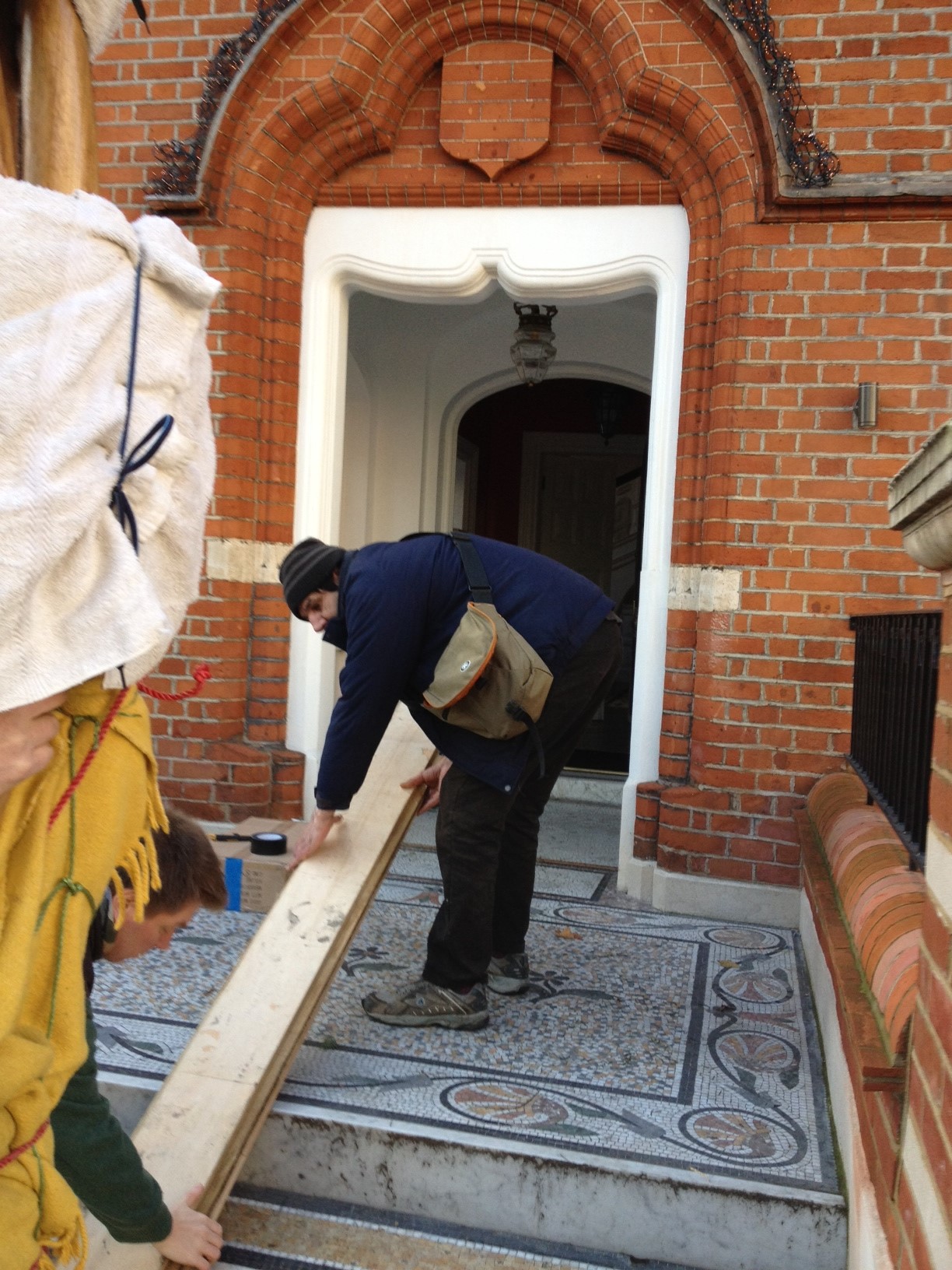 up the steps, into the front hall.