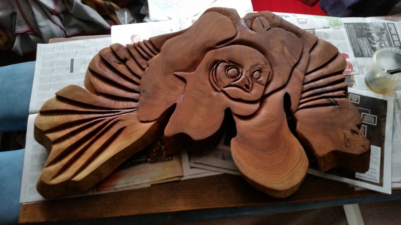neil cox, canadian woodcarver and friend of Owl Studio, sends a few carving photos from canada